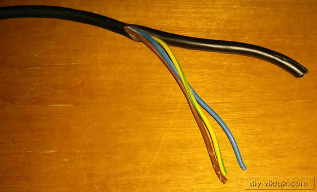 1 cortar los tapones de los acordes de la energía y quitar los 3 cables individuales de aislamiento.