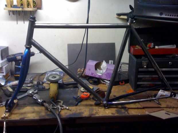He medido la geometría y utiliza la geometría de una bicicleta hecha de Salsa como una plantilla para cómo todo alinear y soldar juntos.