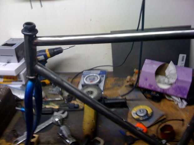 Esta moto que es un más viejo diseño utilizado 1" rosca tubo de dirección. Este diseño es más pesado y a fecha así que esto era el mayor obstáculo enfrentan. Tuve 2 tenedores para elegir y ambos eran 11/8 sin rosca. Investigué y encontró una gran empresa llamada Nova bicicleta fuente y fue capaz de pedir a la barra de dirección y otras soldar partes de ellos que utilicé más adelante.