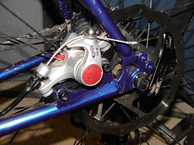 Paso 4: Calibrador de lugar sobre el disco haciendo que las zapatas estén en un buen parche de contacto en el rotor y que el montaje de freno de disco está en buen contacto con la cadena de estancia.