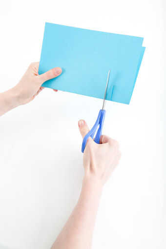 En el lado del pliegue de papel, hacer dos cortes rectos, de largo.