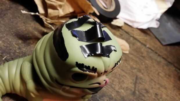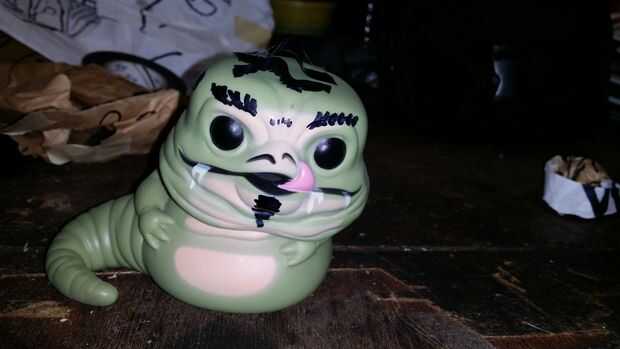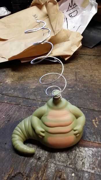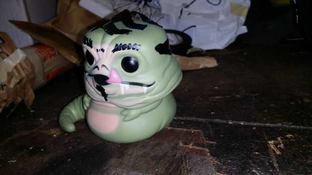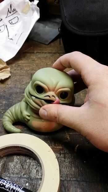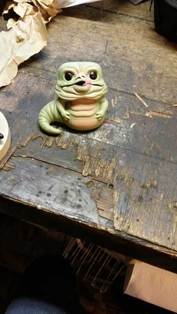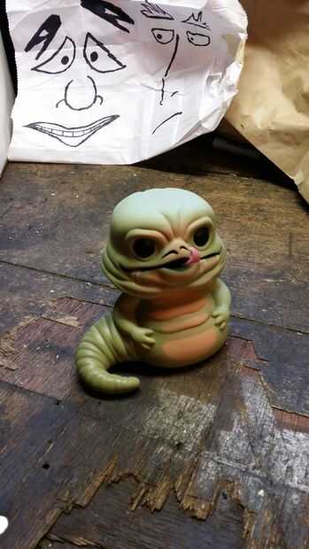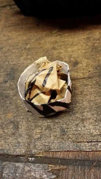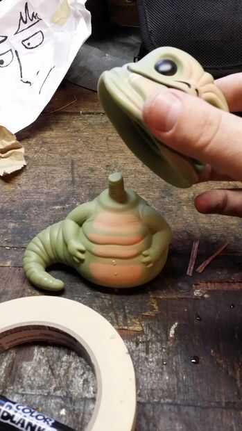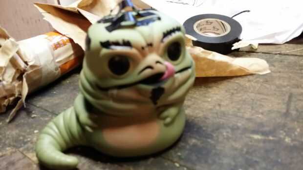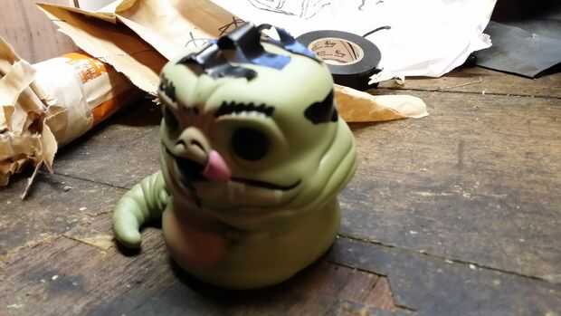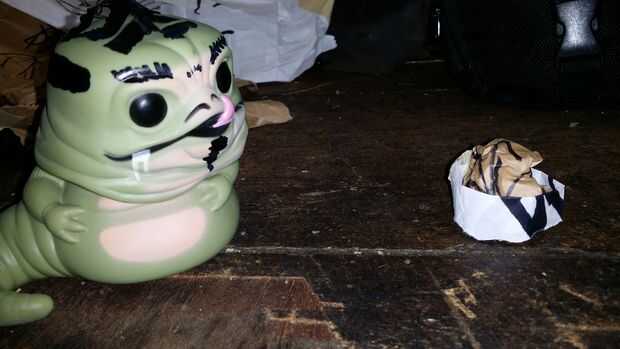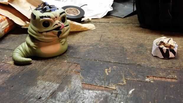 para hacer el tazón de fuente, rasgar un pedazo delgado de cinta de papel. Haz rollo de papel marrón en pequeñas bolas y servir a Jabba. y tiene una risa mientras que él tiene un aperitivo. Oh posición de la cabeza donde usted lo desee. De esta manera usted puede poner la comida lejos de él como en. Parte superior de la nevera.