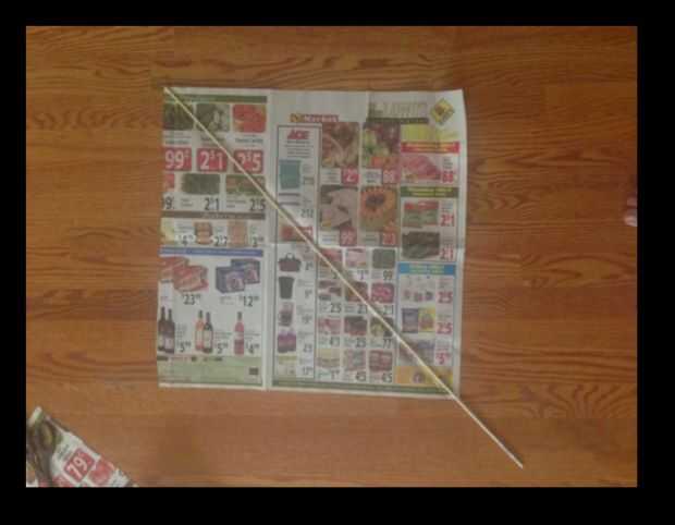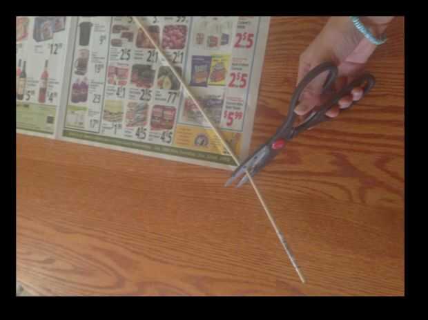 -Colocar el palillo sobre el pliegue del papel (diagonalmente)