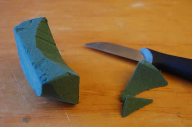 Todo lo que necesitas para hacerlo cortar un trozo de la espuma de floristería el bloque grande un poco más grande que usted quiere su asimiento final y talla más o menos a la forma que usted quiera usar un cuchillo pequeño. Ya que esta espuma es muy delicado que lo hace ideal para alisar y final que forma con los dedos... que puede ser un poco desordenado pero.