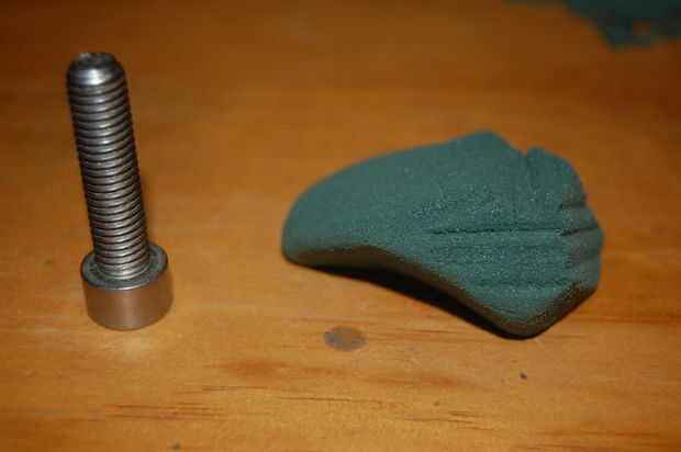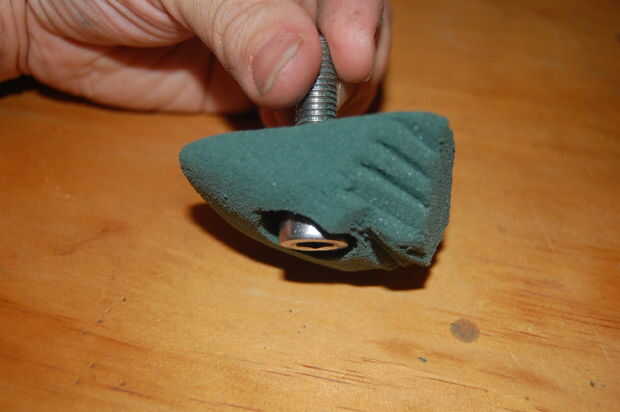A continuación, necesitará crear un agujero a través de su mantenga lo suficientemente grande para el tornillo. Yo uso una de 8mm Taladro mordido para crear mi agujero es que era algo que ya tenía, luego amplió el agujero con mi 10mm perno de fijación. Avellane entonces un agujero más grande para mi lavadora usando un pequeño esmeril taladro de mi hobby. Trate de hacer el agujero como perpendicular a la arista de la parte posterior plana como sea posible ya que esto reducirá la posibilidad de que el giro espera.