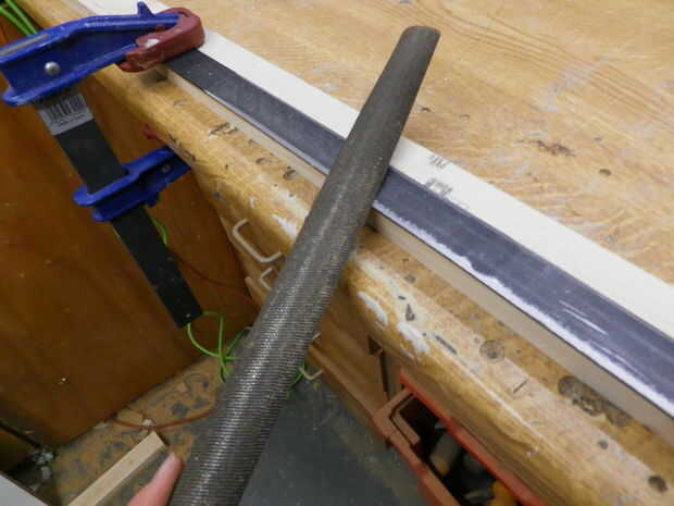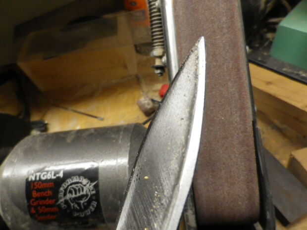 Usando una lijadora de banda y un archivo poco a poco afilado los bordes y afilado el punto, preste atención a qué ángulo afile en el porque si usted quiere encontrar un equilibrio entre un cuchillo y un hacha borde es agudo pero el borde no es frágil.