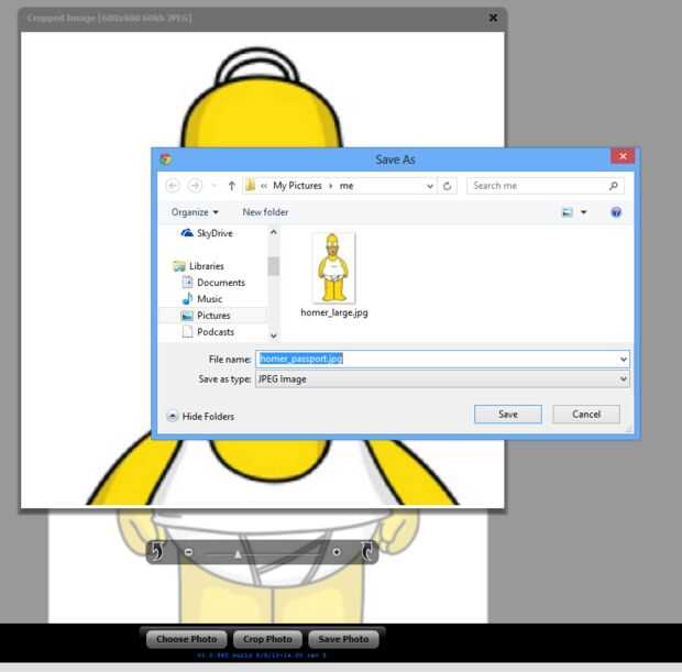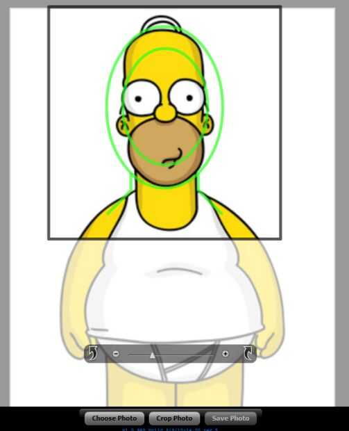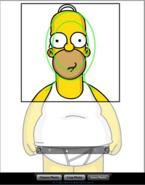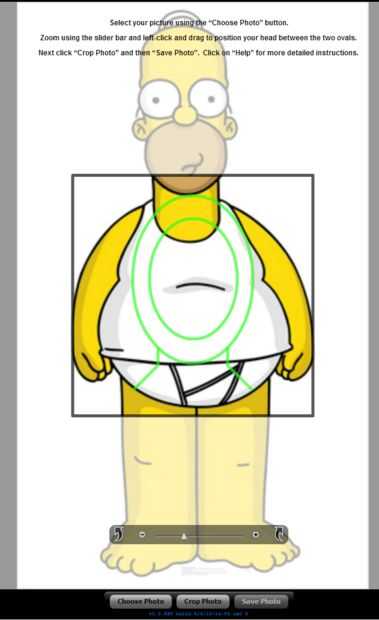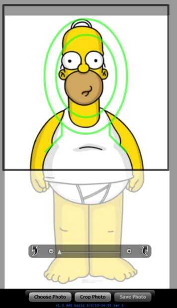 Como se puede ver, esta herramienta provee un fácil de usar guías verde brillante para dónde colocar su cabeza. Puede arrastrar para cambiar la posición y utilice el control deslizante en la parte inferior para acercar y alejar. Poner la cabeza entre la línea de la elipse exterior e interior. Una vez que estés feliz con él, use el botton en la parte inferior de la página para recortar y guardar el archivo de imagen en tu disco duro.