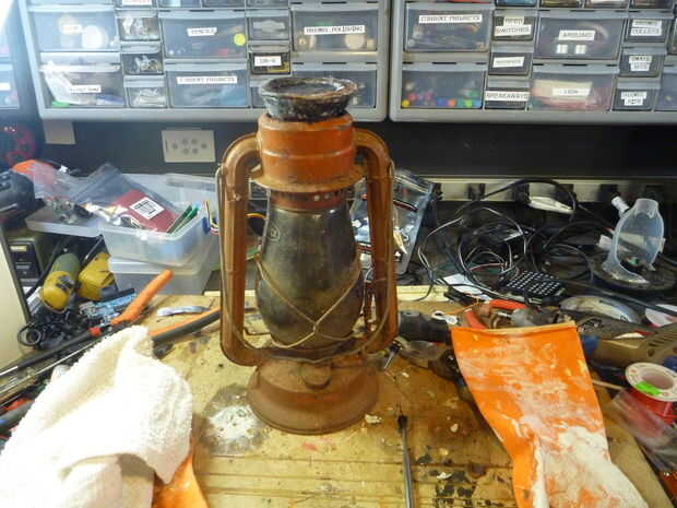 aquí es un proyecto fácil que se puede hacer en unas horas convertir una vieja linterna de keroseno en una linterna Solar con un efecto ambiental que brilla intensamente rojo.