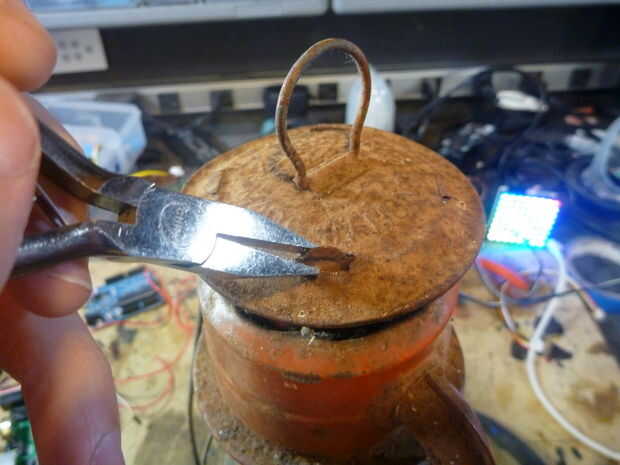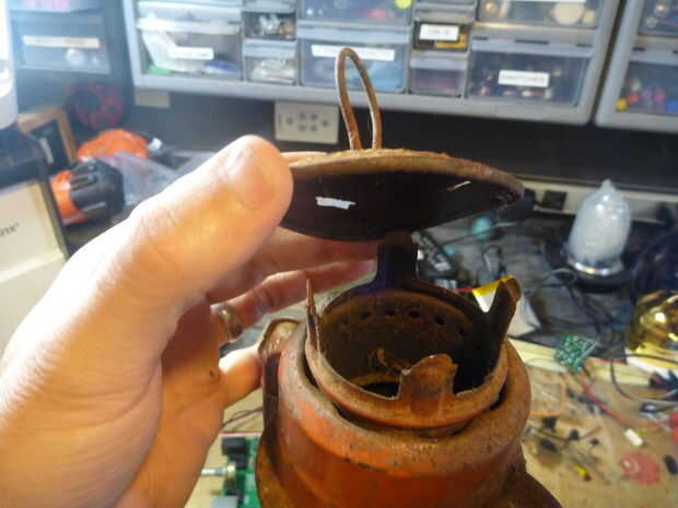 Encontrar un viejo latern y retire la tapa. Utilizar la dremel para cortar una abertura para el panel solar.