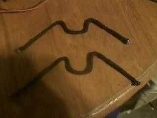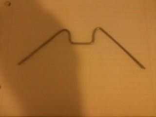 Medida, snip y curva su tieso alambre en las patas con el perfil de la batería en el medio. Tire las tripas fuera el paracord y deslizar la vaina sobre el alambre, luego aplicar abundante pegamento en los extremos. Pido disculpas, necesito una cámara nueva (Hint, Hint).