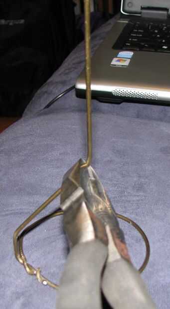 Primera: Sostenga la base firmemente donde la Unión es entre el giro y donde está el resto del cable, puede utilizar sus pinzas o sus manos para éste. Yo prefiero usar alicates, porque da un mejor aprovechamiento. La curva vertical el cable restante hasta que esté en un ángulo de 90 grados a la base.