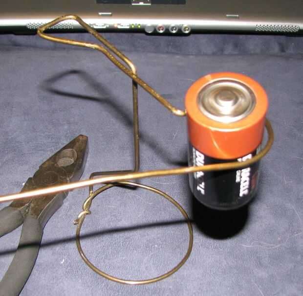 Segundo: Mantenga el cable contra su forma (en este caso, una batería de D) y curva el hilo alrededor de él. También puede utilizar el mismo método que en la base de formación, usando un cilindro abierto y soporte el cable contra él con tus alicates. No quiero ser una U abierta, que sea un poco más cerrada de la curva.