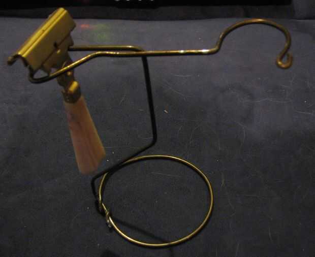 Como se puede ver debajo el soporte tendrá artículo, maquinilla de afeitar o cepillo, por sí mismo. Centrando el vertical sobre la base y extendiendo la maquinilla de afeitar, manteniendo el cepillo más cerca al centro le ayudará a distribuir el peso correctamente. Si no se resistirá su stand con sólo uno de los dos elementos, hecha su base vertical demasiado pequeño, demasiado alto, o extendido demasiado el portaescobillas. En este ejemplo el cepillo no es cerca del centro, pero mi cepillo es muy ligero.