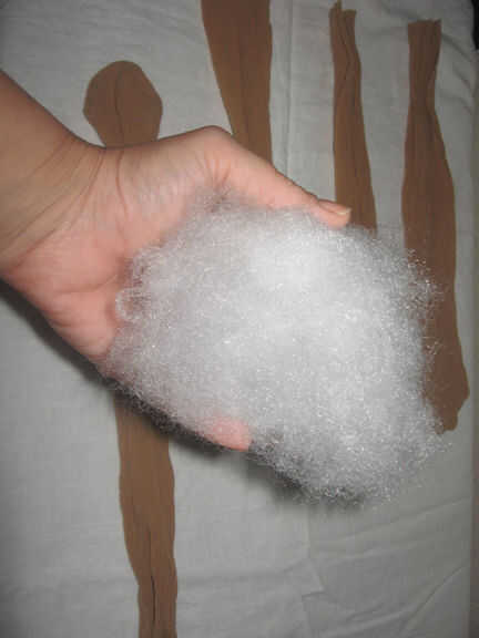 Tomar puñado de relleno de almohada para rellenar tu rizador. Usar la tapa de mi mousse de Tresemme para medir la cantidad correcta, cosas que hasta que no llene más y es la cantidad correcta. Si no tienes una tapa para la mousse ya a globo ocular.