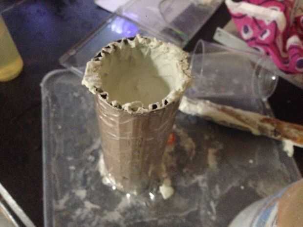 Hacer la mezcla un poco espesa y verter en el cilindro.