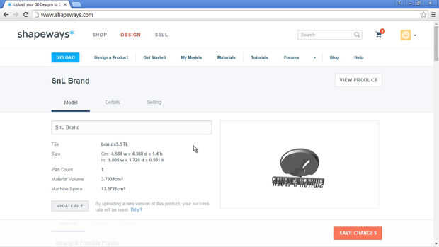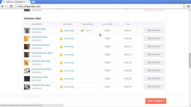 Cuando estás seguro de que todo está bien, subir de golpe y esperar como Shapeways comprueba automáticamente el archivo. Si pasa, hacer una verificación manual para asegurarse de que todo parece que esperar antes de ordenar su marca en acero inoxidable.