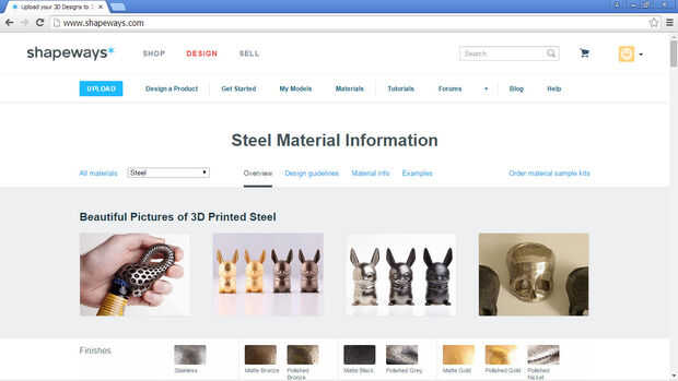 Vamos a utilizar una línea servicio llamado Shapeways para conseguir que nuestra marca de fábrica 3d impreso, directamente en acero inoxidable.