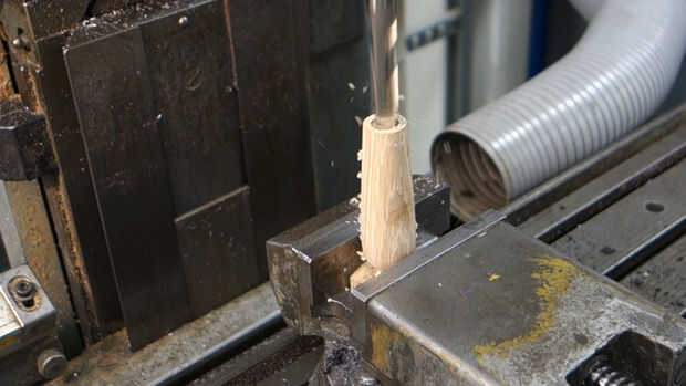 Desglosar una hendidura en el extremo de la manija y encaja un inserto roscado, que debe coincidir con el hilo que se corta en la banda de metal. Agregar un poco de epoxy en el inserto roscado antes de presionar en asegurará que nunca saldrá.