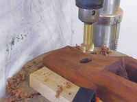 Perfore un agujero de 25mm 25mm de profundidad en la parte delantera del avión, 110mm detrás de la punta, Foto 14. Pegar la perilla en su lugar, y el cuerpo del avión se acaba.