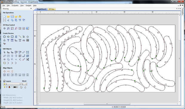 ¡ Oh! Una cosa que gustaría mencionar que nadie pensó a decirme fue que te han que pone hacia fuera todas su piezas individualmente primera y entonces usted puede usar el poder de Vcarve para anidar los elementos individuales y añadir las pestañas, etc.