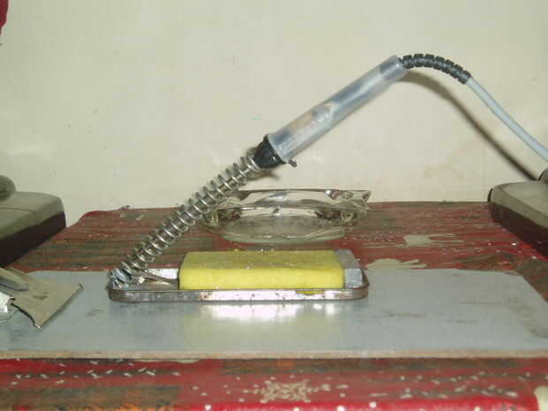Punta [también puede Agregar un trozo pequeño de depurador cocina metálica en el frente donde hay un pequeño lugar para scrubing las impurezas de la punta... también humedecer la esponja con agua mientras se suelda]