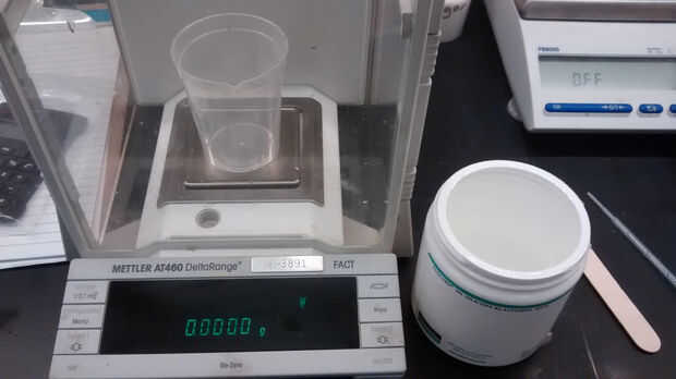 Las dos partes de PDMS se agrega en un vaso desechable. Para Sylgard 184, es una mezcla 10:1. Aproximadamente 15 g de PDMS se pesó, que era sólo un poco más de lo necesario para una ventana.