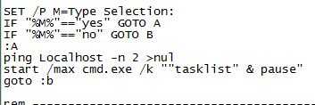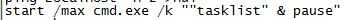 Inicio/max cmd.exe /k "" tasklist"y pausa"