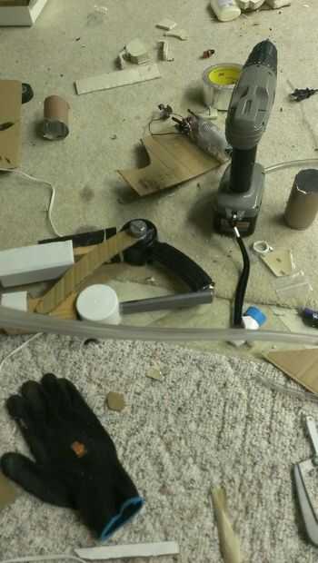 Utilicé tubería quirúrgica, pero puede improvisar, para hacer el tubo. Colócala en el carro superior. Pegar el otro lado de la manija.
