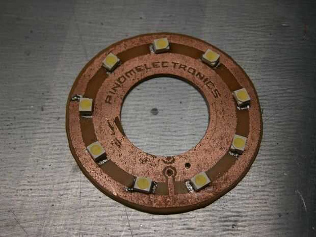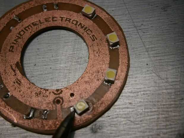 Luego coloque cuidadosamente la ONU LEDs la misma dirección, porque están en paralelo. (He puesto con el ánodo conectado al aro exterior)