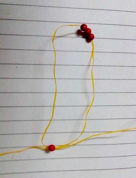 Poner una cuarta capa por un extremo del hilo y cruzar ese grano, pasando el otro extremo del hilo a través de ella también.