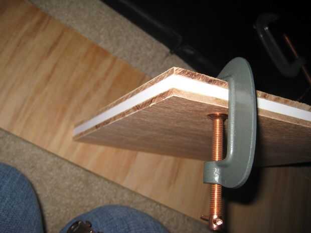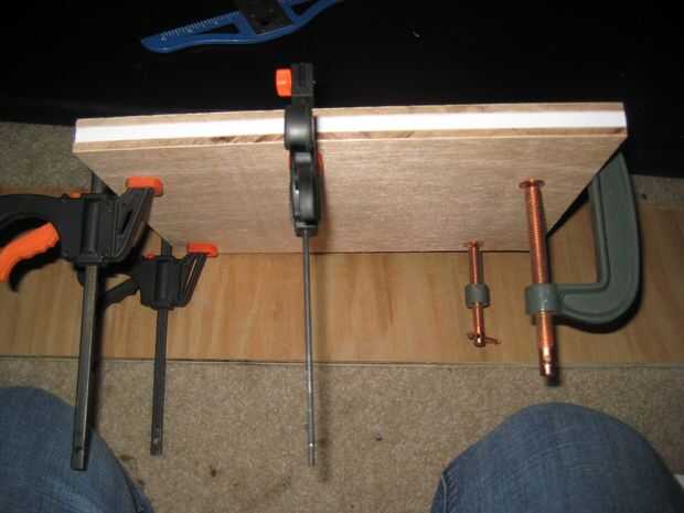 Luego sujetarlos todos juntos. Apriete las pinzas muy apretadas sin deformar el respaldo duro. Desea bordes rectos lisos todo