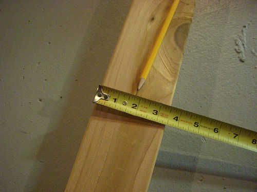 A partir de la primera base, marca la línea central. La base es de 3,5 pulgadas de ancho, use su lápiz y cinta métrica rayar una marquita 1,75 pulgadas desde el borde largo como se muestra en la primera imagen.