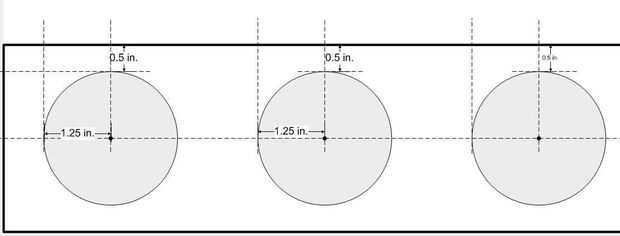 Finalmente, marque el "borde" superior e izquierdo para definir la colocación de cada ruedecilla. Usando el primer centro de señalar como un ejemplo (imagen 4), mide 1,25 pulgadas a la izquierda del centro. Mide 0,5 pulgadas desde el borde superior en consonancia con el punto central. Repita para los restantes puntos de centro de 5 rueda en esta base.
