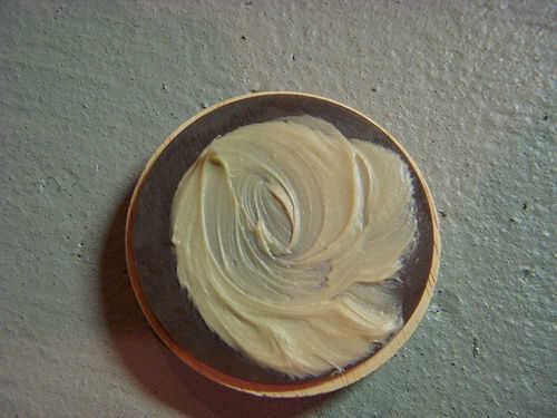 Usando su dedo índice, extienda el adhesivo lo más uniformemente posible en toda la parte inferior de la rueda. (Tercera imagen).