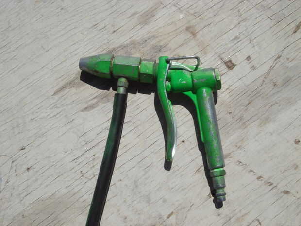 Para construir a la arenadora, conecte la manguera a la pistola de aire y el otro extremo de la gota en un balde de arena de granate u otros abrasivos. Abrasivos tamaño incluso deberían funcionar - agarró este fuera un montón de significado para el chorro de agua abrasivo.