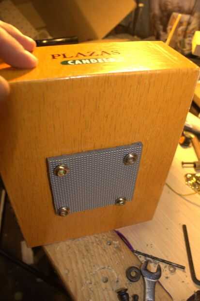 Me di cuenta de muchos ejemplos de material que se utiliza para altavoz... parrillas también cubre ventilador de ordenador... He buscado en mi taller y no podía encontrar nada apropiado rústico... así que.. .just cortar la parrilla de la TV donde tengo el altavoz!
