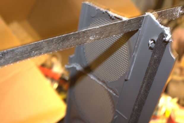 Para hacer la parrilla del tamaño correcto, sólo puse el plástico en un vicio y utiliza una sierra para metales básico, luego que alisar los bordes de la amoladora de banco.