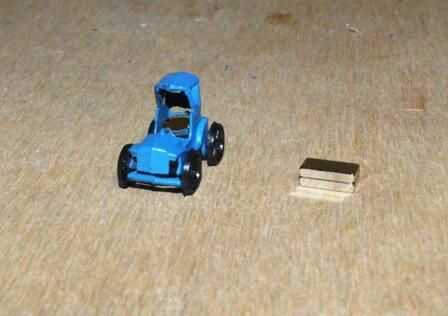 2. Coloque el imán en la parte inferior del coche. Asegúrese de que los polos son correctos. Trabajé mina hacia fuera a través de ensayo y error.