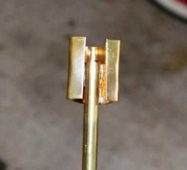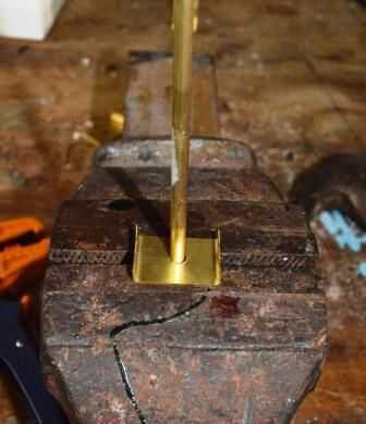2. doble un pedazo plano de cobre como se muestra abajo y soldadura en la parte superior del poste.