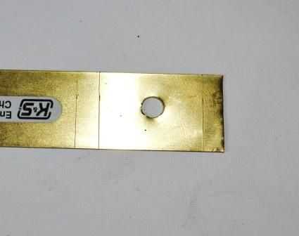 6. corte un par de piezas de cobre plana y curva y perforación como se muestra. Estos serán los tirantes para sostener los tubos de cobre en su lugar.