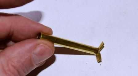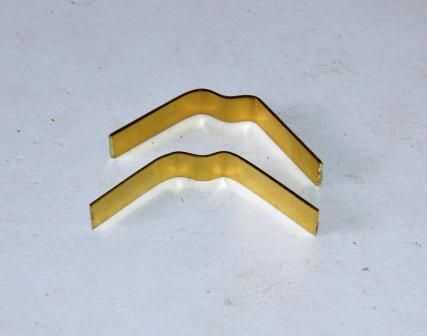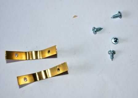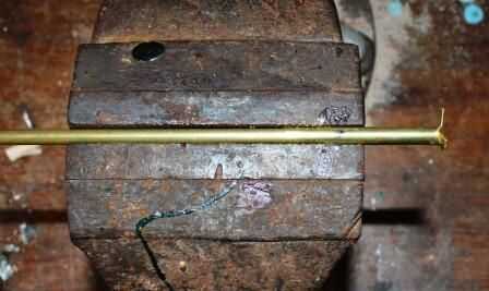 6. corte un par de piezas de cobre plana y curva y perforación como se muestra. Estos serán los tirantes para sostener los tubos de cobre en su lugar.