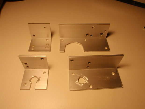 10.2 Instalación del eje de pedalier con dos 8-32 x 1" tornillos, arandelas y tuercas. Foto #9. Al instalar las escuadras AL, mantenga un borde una distancia fija del borde del trineo para que sean todos paralelos y en línea como se muestra en la foto #14.