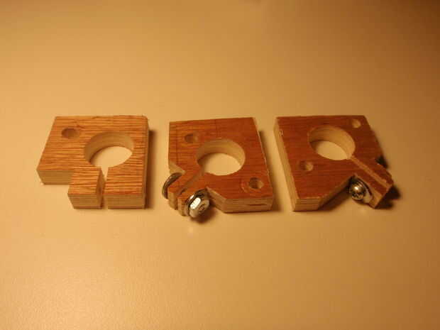 10.4 Fije el soporte del motor para el trineo usando tornillos de máquina 8-32 x 1". El huso, venda de elástico y husillo cojinete pinza tienen que montarse en esta etapa. El acuerdo debería verse como la foto # 13. La abrazadera del cojinete tiene un tornillo 6-32 x 1/2" máquina para asegurar el cojinete con dos #8 arandelas. La abrazadera se une al del eje de pedalier usando dos 8-32 x 1" tornillos, arandelas y tuercas.
