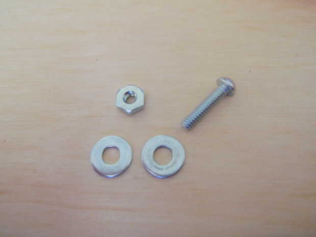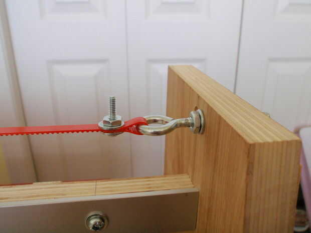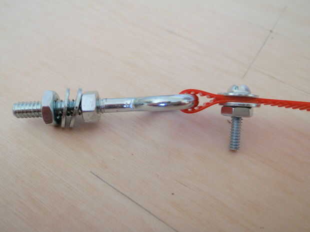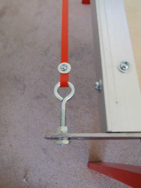 13.3 montar los anclajes de la correa de momento bucle en los extremos de la correa alrededor de los pernos de ojo y cerrando el bucle usando los tornillos 6-32 (fotos # 2, 3). Los agujeros será más pequeños que los tornillos pero torcer mientras empuja conseguirán aunque el agujero. Las ranuras deben ser en el interior del bucle y afianzado con abrazadera cierre asegurándose de que las ranuras son hechas en malla. El armado debe asemejarse a la foto #5.