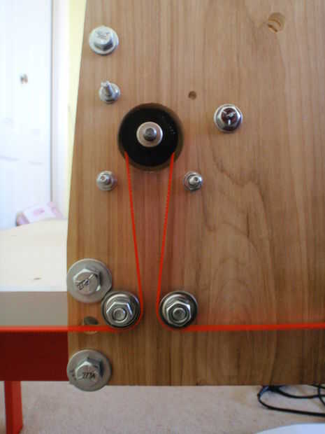 13.5 para el eje x hay exceso de longitud en el cinturón. En lugar de cortar la cinta a la longitud até el exceso fuera del camino como se muestra en la foto #10 en el caso de que quería hacer el eje mayor en el futuro. Es un apretón apretado para obtener el cinturón alrededor de la polea rodamientos y pernos de montaje del motor y sobre la polea. No intente y serpiente en el ojo del perno a través porque wont encajan. Hacer un lazo en medio de la correa y alimentarla los cojinetes de rodillos y sobre la polea. Coloque las armellas para que la correa está en consonancia con los rodamientos de rodillos que también deben estar en línea con el carril X cercanos. Fotos #10,11.