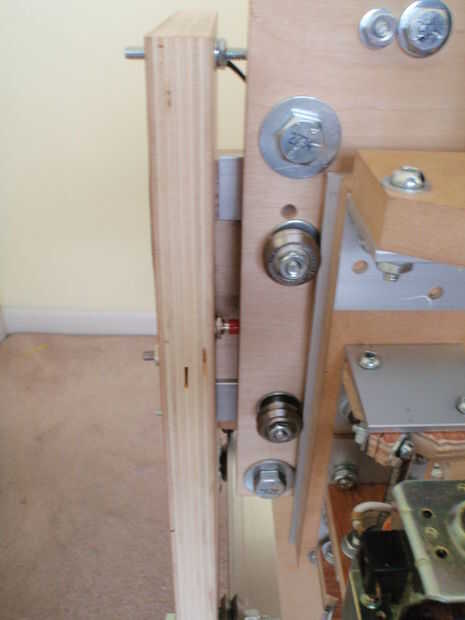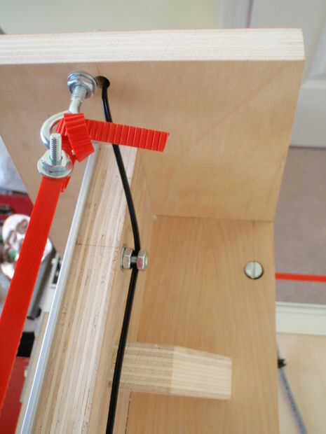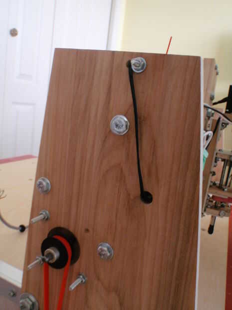 15.3 Coloque un interruptor rojo en el lado izquierdo del pórtico (X casa) y un negro un (límite) en el lado derecho (fotos #5-6). El cable de alimentación del interruptor del hogar a través del orificio al lado de la abrazadera de la correa y el cable por la parte trasera del pórtico. #8 tuercas en los tornillos que sobresalen del riel superior X y apriete suavemente el hilo de rosca mantiene el cable en su lugar. El cable de alimentación a través del orificio en el lado opuesto y el paquete con el cable del interruptor a la derecha. Fotos #7-9