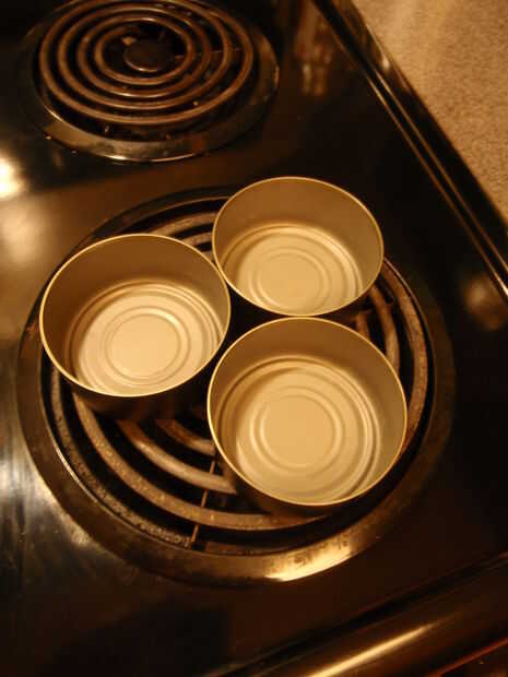 Limpiar latas de tres atún para su uso como moldes. He hecho piezas brutas de todos los tamaños de las latas de tomate de pasta para el collar de eje y latas de tomate más grandes dependiendo de lo que quiero utilizar el plástico para. (Foto #3)
