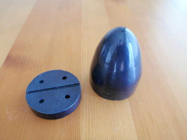 -Después de 24 horas para que la curación de epoxy la parte fue tomada hacia fuera (lo sentimos, se olvidó colocar una foto de este paso), el vidrio sobrante corte alrededor de la parte inferior, una capa de imprimación aplicada y lija para quedar al ras con el cubo de la hélice. Foto #16