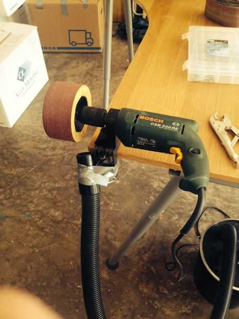 En este punto usted puede elegir formar el mango usando un taladro simple con una lija rotativa o un huso. O puede utilizar herramientas de mano tales como archivos y áspero papel de lija. La diferencia en el tiempo y la energía es menos de lo que piensa. Usando herramientas eléctricas da menos espacio para errores como cosas pueden salir mal más rápidamente...