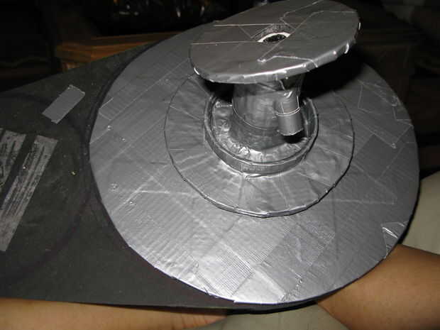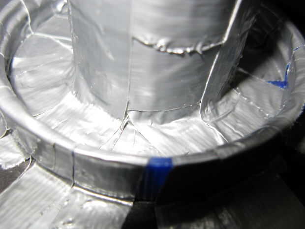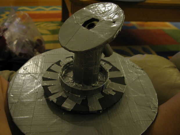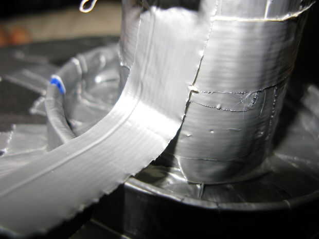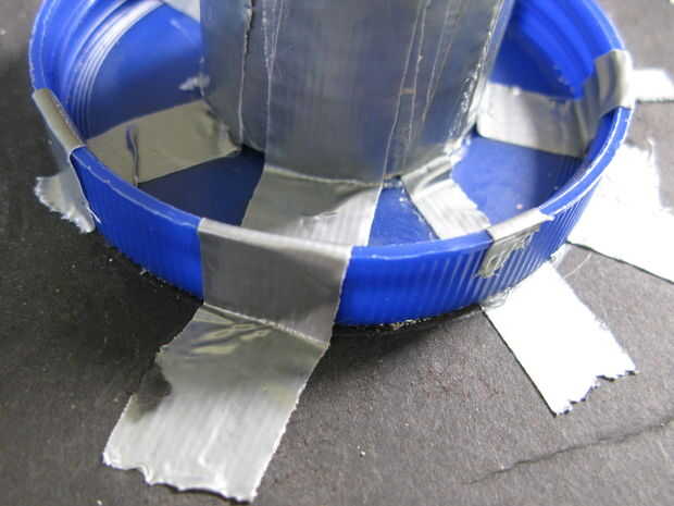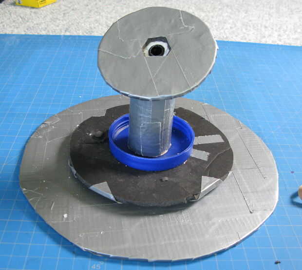 4. Proteger agregando tiras adicionales de cinta para hacer el tubo de Turner conjunta. Si el túnel se pega el tubo, cinta conexión así. Probablemente deberás cortar ranuras en la cinta en la Unión para hacer la cinta mentira plana. Continuar haciendo esto hasta que la pieza es muy seguro y estable. Cubra cuidadosamente toda la pieza, incluyendo la parte superior de la bandeja giratoria, con cinta adhesiva.